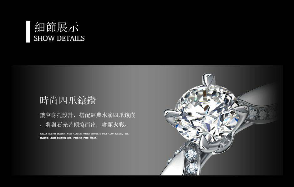 说明: 钻石4C——重量:0.5CT,颜色:F,净度:VVS,切工:3EX,无荧光、无奶咖绿。